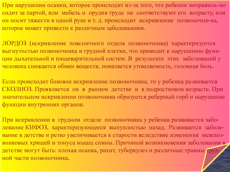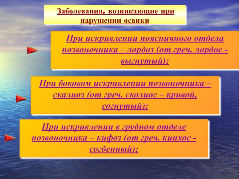 При искривлении поясничного отдела позвоночника – лордоз (от греч. лордос - выгнутый);