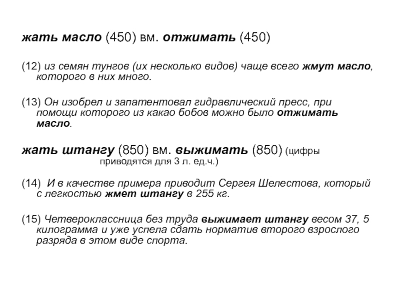 Слайд 12жать масло (450) вм. отжимать (450)