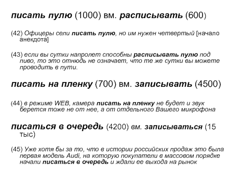 Слайд 18писать пулю (1000) вм. расписывать (600)