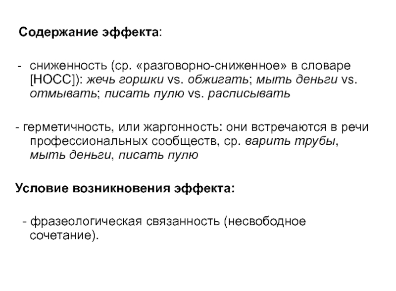 - герметичность, или жаргонность: они встречаются в речи профессиональных сообществ, ср. варить трубы, мыть деньги, писать пулю