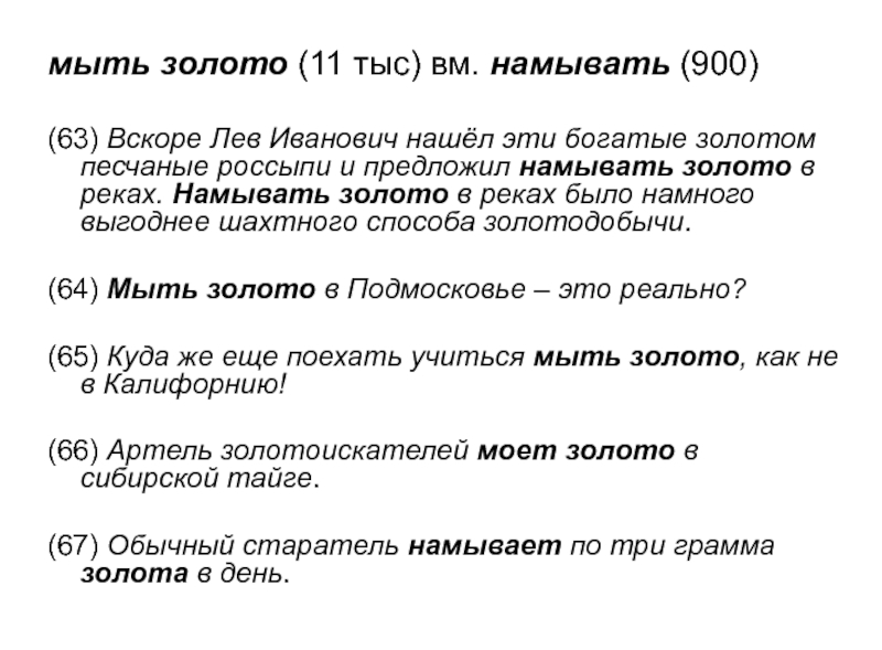 Слайд 24мыть золото (11 тыс) вм. намывать (900)