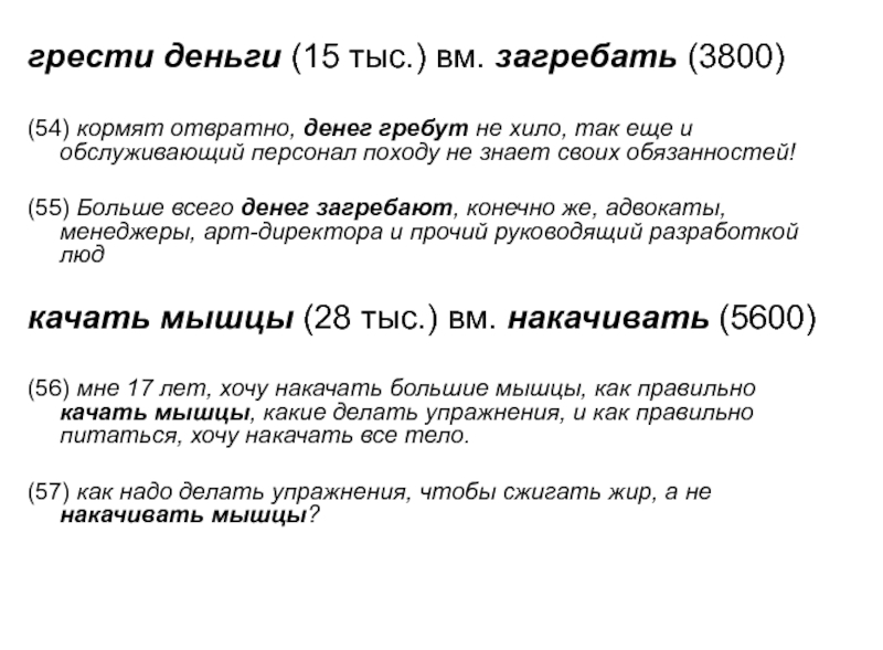 Слайд 21грести деньги (15 тыс.) вм. загребать (3800)