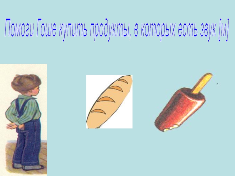 Слайд 3Помоги Гоше купить продукты, в которых есть звук [м]