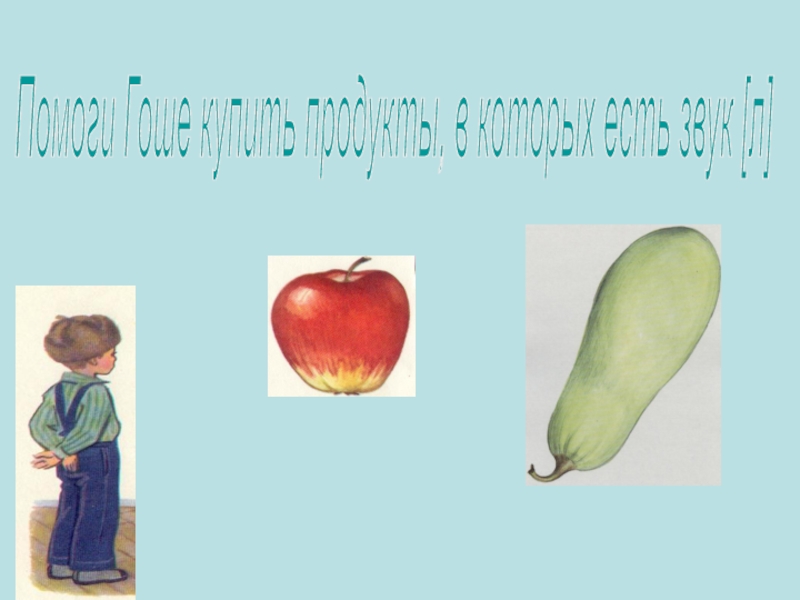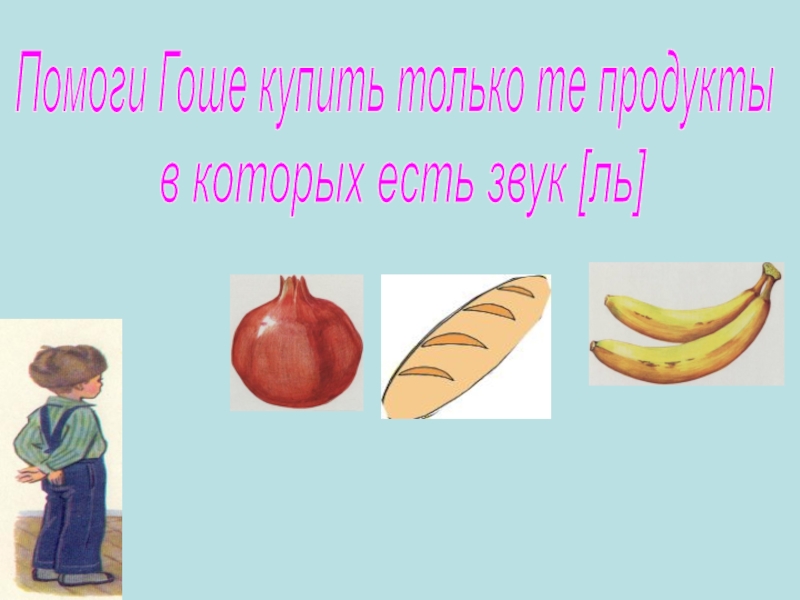 Слайд 6Помоги Гоше купить продукты, в которых есть звук [л]