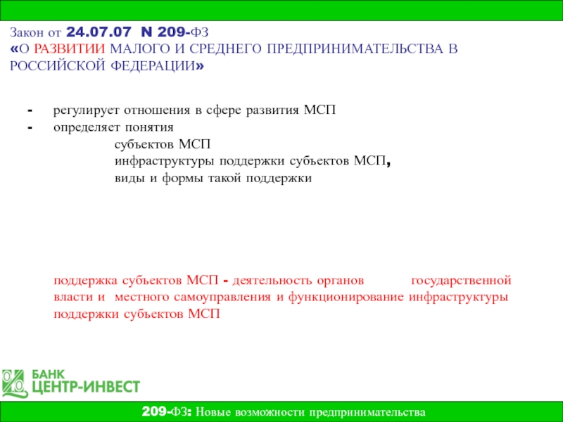 «О РАЗВИТИИ МАЛОГО И СРЕДНЕГО ПРЕДПРИНИМАТЕЛЬСТВА В РОССИЙСКОЙ ФЕДЕРАЦИИ»