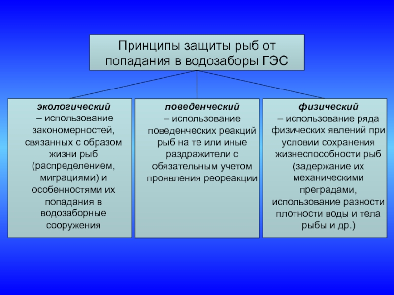 – использование закономерностей, связанных с образом жизни рыб (распределением, миграциями) и особенностями их попадания в водозаборные сооружения