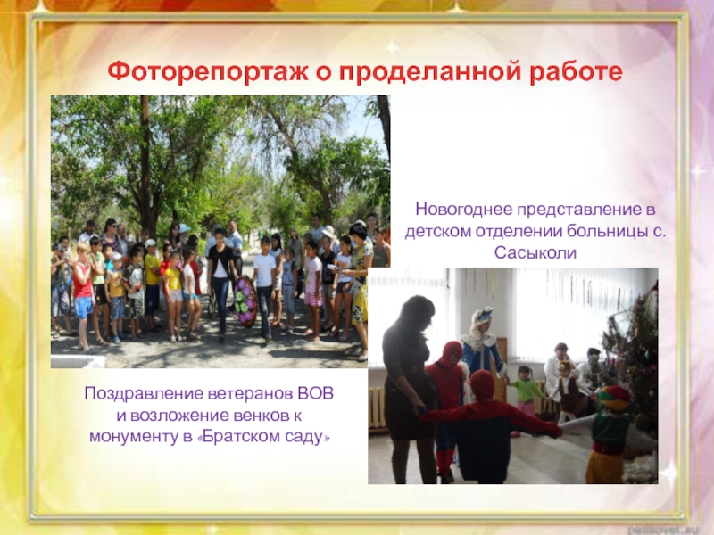 Слайд 22Фоторепортаж о проделанной работе