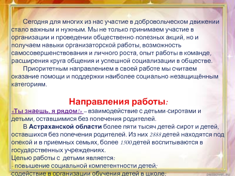 «Ты знаешь, я рядом!» – взаимодействие с детьми-сиротами и детьми, оставшимися без попечения родителей.