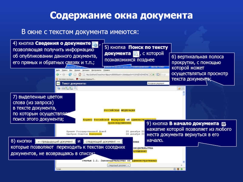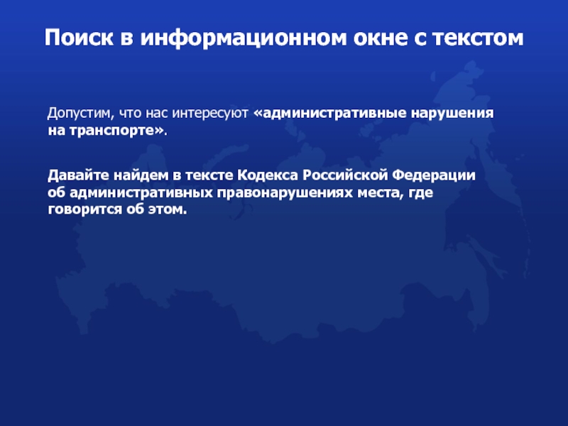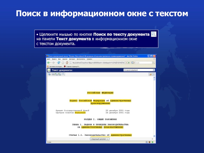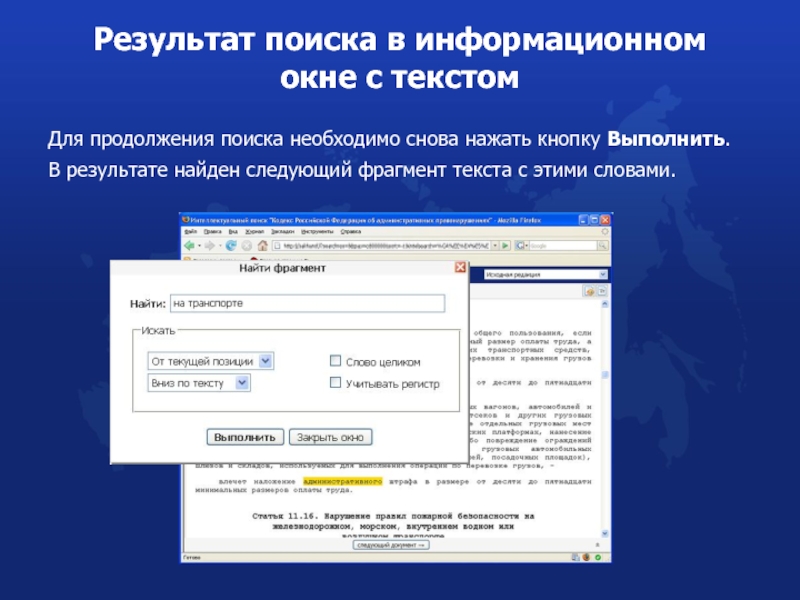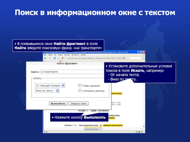 Поиск в информационном окне с текстом