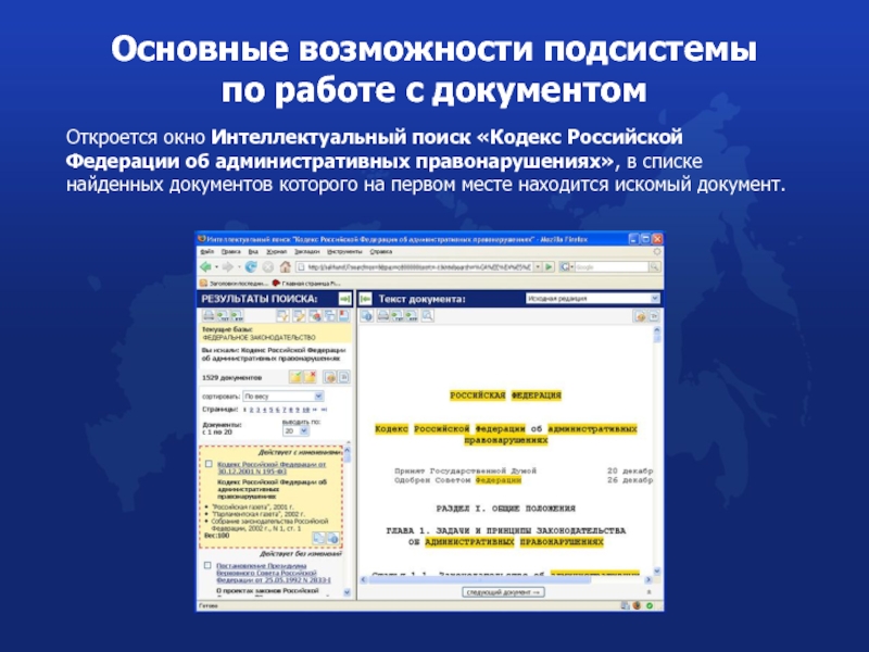 3) введем с помощью клавиатуры в поисковую строку для ввода запроса фразу «Кодекс Российской Федерации об административных правонарушениях»;