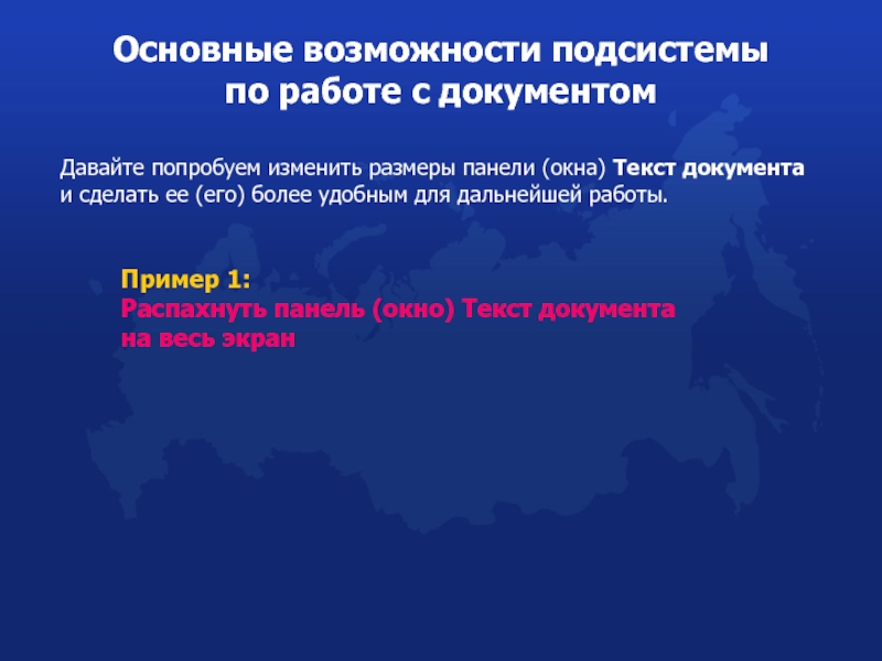 Распахнуть панель (окно) Текст документа