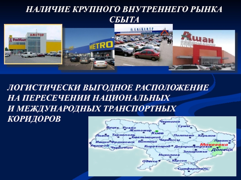 Выгодное экономико-географическое положение (транспортные коридоры), близость к Донецку