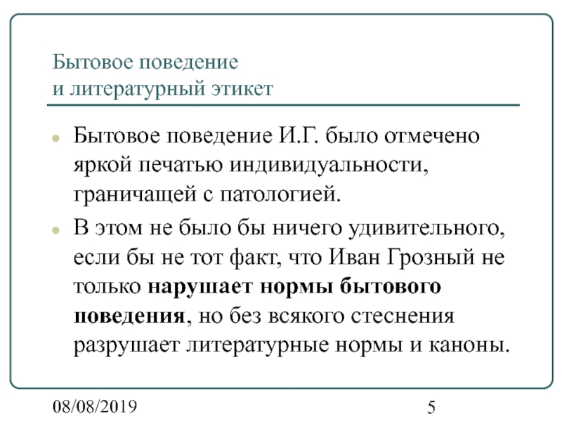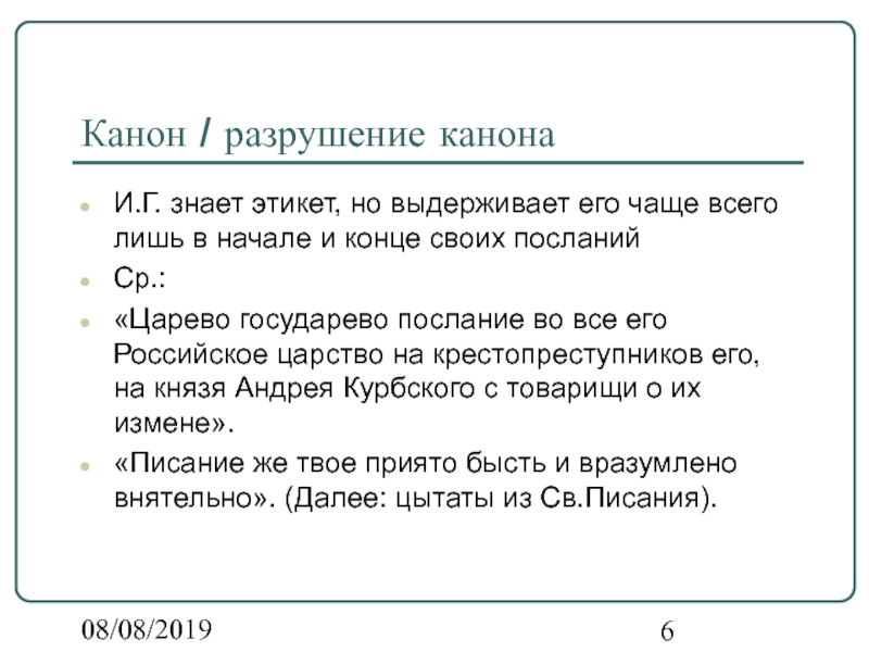 В этом не было бы ничего удивительного, если бы не тот факт, что Иван Грозный не только нарушает нормы бытового поведения, но без всякого стеснения разрушает литературные нормы и каноны.