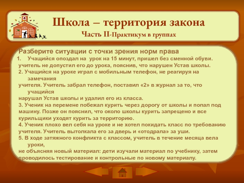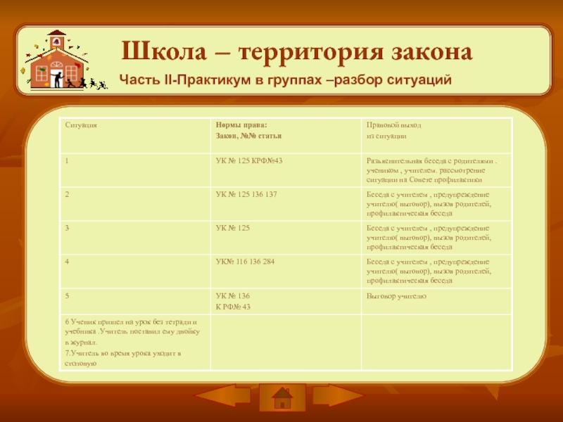 5. В ходе затяжного конфликта с классом, учитель в течение месяца вела уроки,