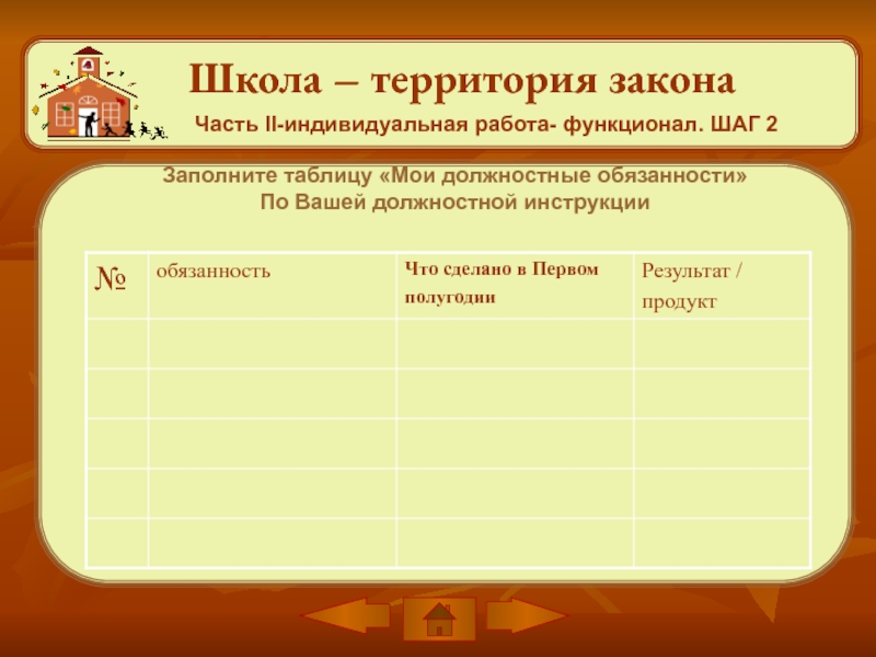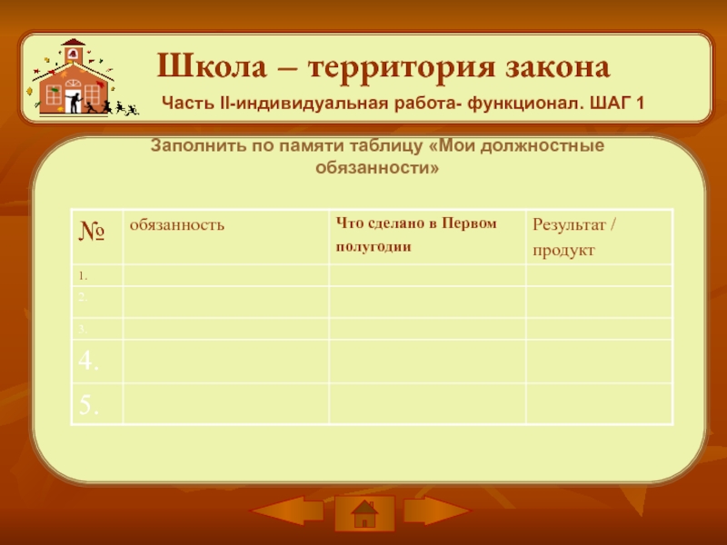 Заполнить по памяти таблицу «Мои должностные обязанности»
