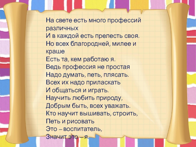 Моя профессия – воспитатель. Каждый день, спеша на работу, я думаю