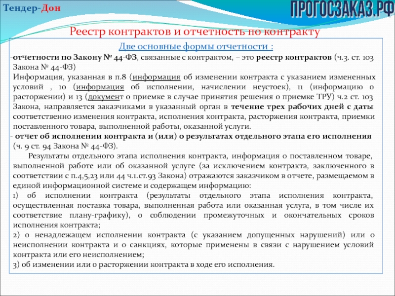 Согласно статье 103 Закона № 44-ФЗ в реестр контрактов, заключенных заказчиками, включаются следующие документы и информация:
