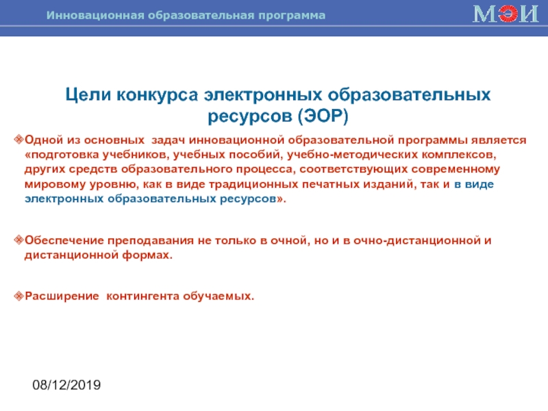 присутствие логотипов МЭИ (ТУ) и инновационной образовательной