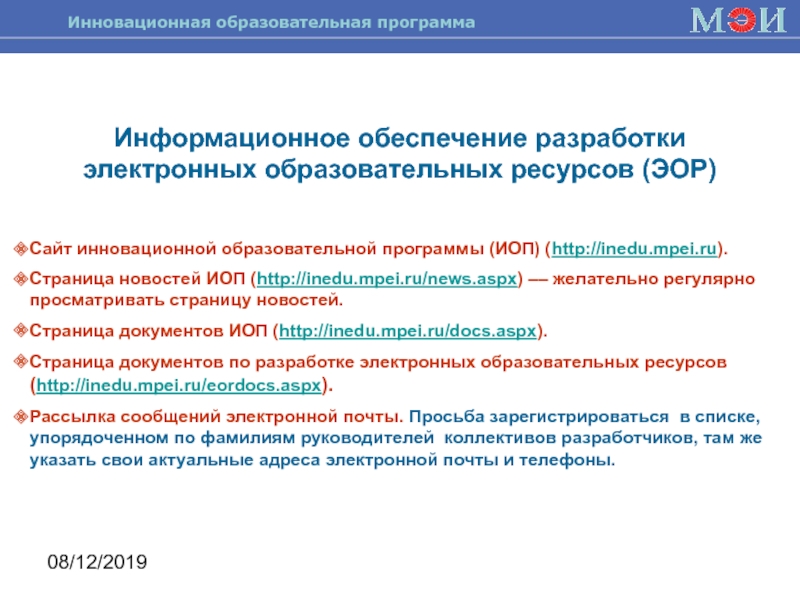 Страница документов по разработке электронных образовательных ресурсов (http://inedu.mpei.ru/eordocs.aspx).