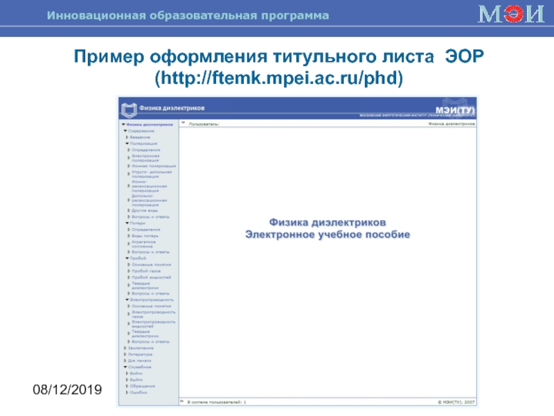 Пример оформления титульного листа ЭОР (http://ftemk.mpei.ac.ru/phd)