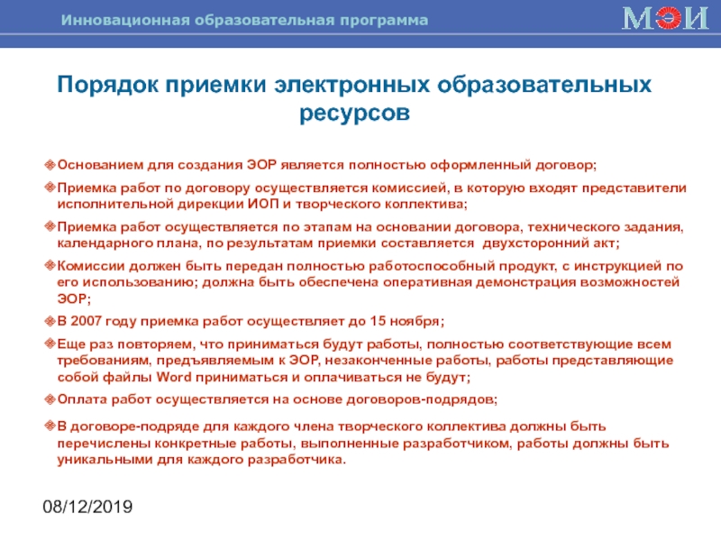 Приказ №118 от 08.05.07. Об организации разработки электронных образовательных ресурсов (http://inedu.mpei.ru/docarchive/order72.doc).