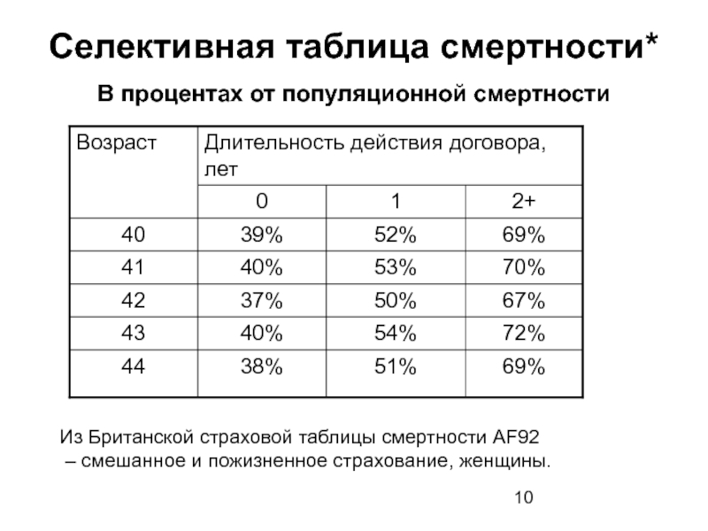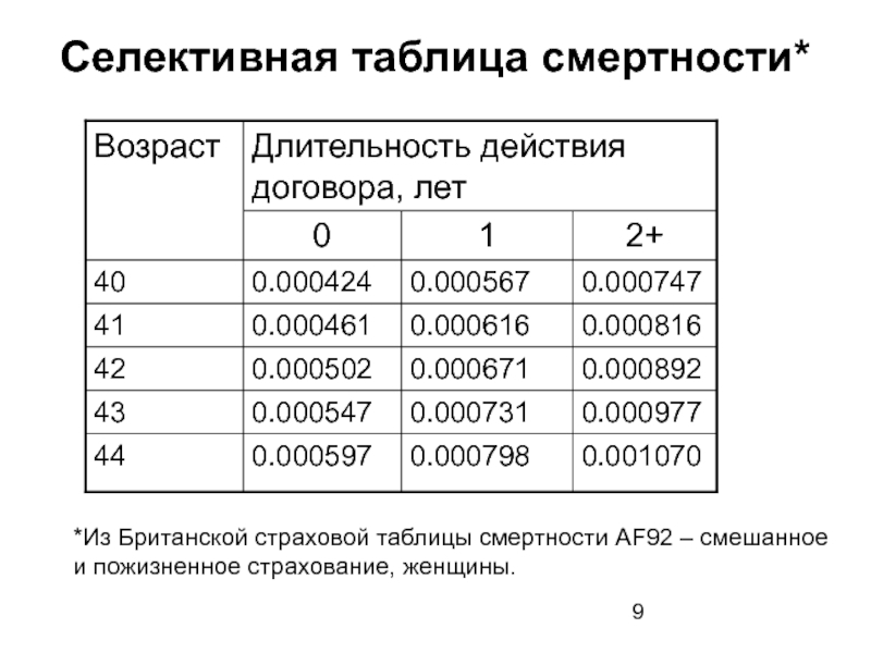 *Из Британской страховой таблицы смертности АF92 – смешанное