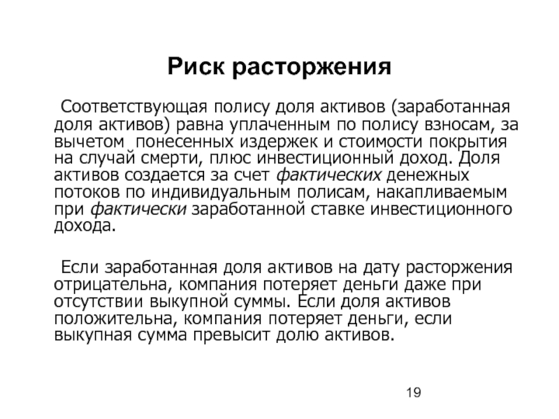 полису взносам, за вычетом понесенных издержек и стоимости покрытия на случай смерти, плюс инвестиционный доход. Доля активов создается за счет фактических денежных потоков по индивидуальным полисам, накапливаемым при фактически заработанной ставке инвестиционного дохода.