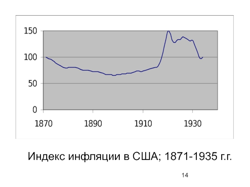 Слайд 14 Индекс инфляции в США; 1871-1935 г.г.