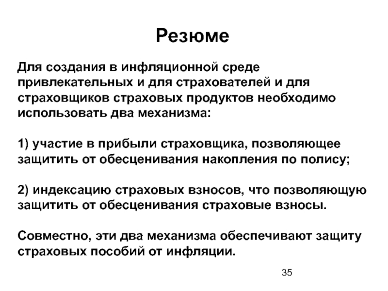 Совместно, эти два механизма обеспечивают защиту страховых пособий от инфляции.