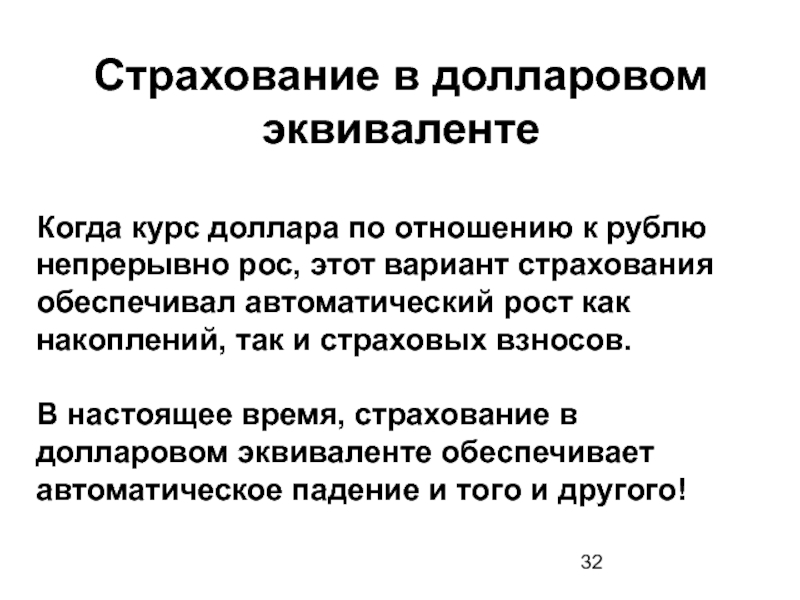 В настоящее время, страхование в долларовом эквиваленте обеспечивает автоматическое падение и того и другого!
