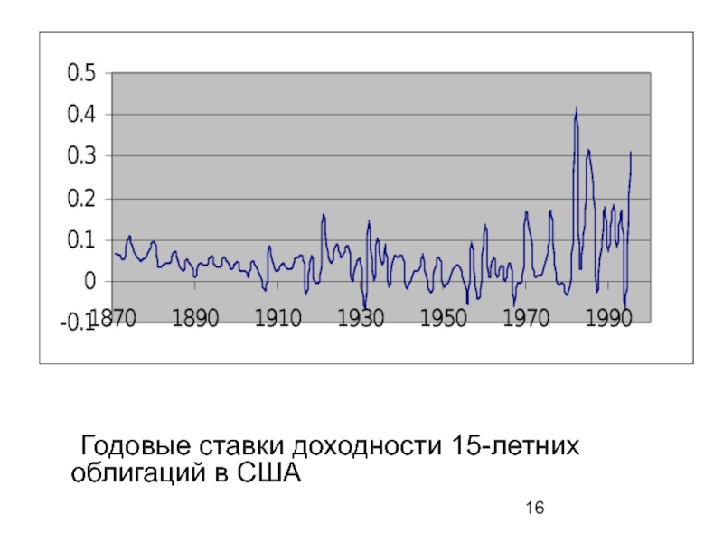 Слайд 16 Годовые ставки доходности 15-летних облигаций в США