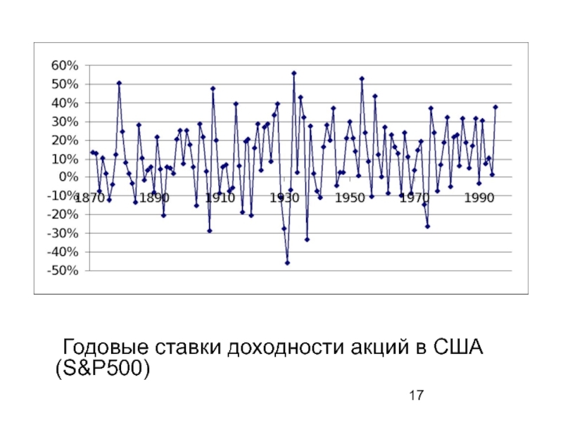 Слайд 17 Годовые ставки доходности акций в США (S&P500)