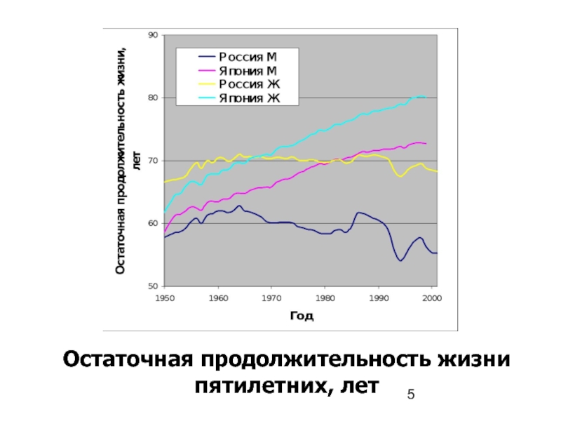 Слайд 5Остаточная продолжительность жизни пятилетних, лет