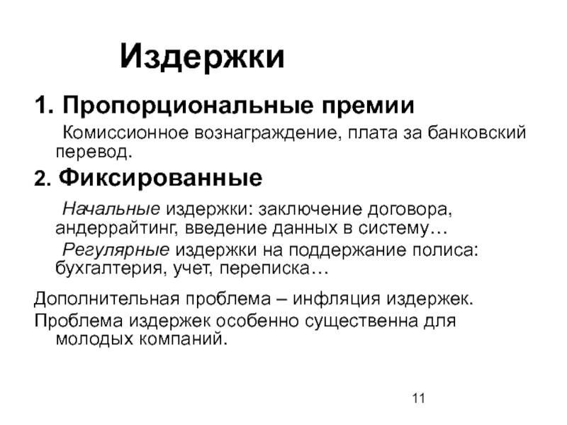Выпуск полиса связан с большими издержками: комиссионное вознаграждение, маркетинг,