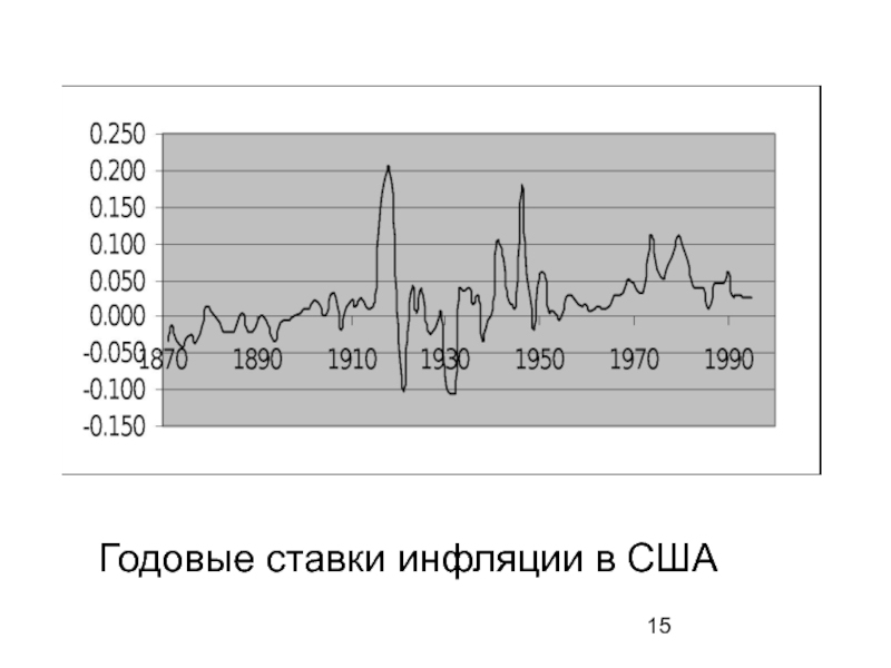 Слайд 13Индекс инфляции в США, 1871-1995 г.г.