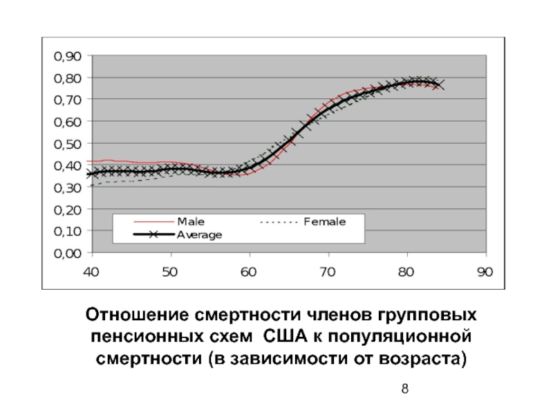 Отношение смертности членов групповых пенсионных схем США к популяционной смертности (в
