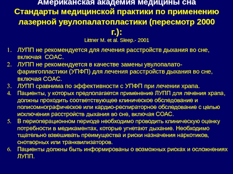 Стандарты медицинской практики по применению лазерной увулопалатопластики (пересмотр