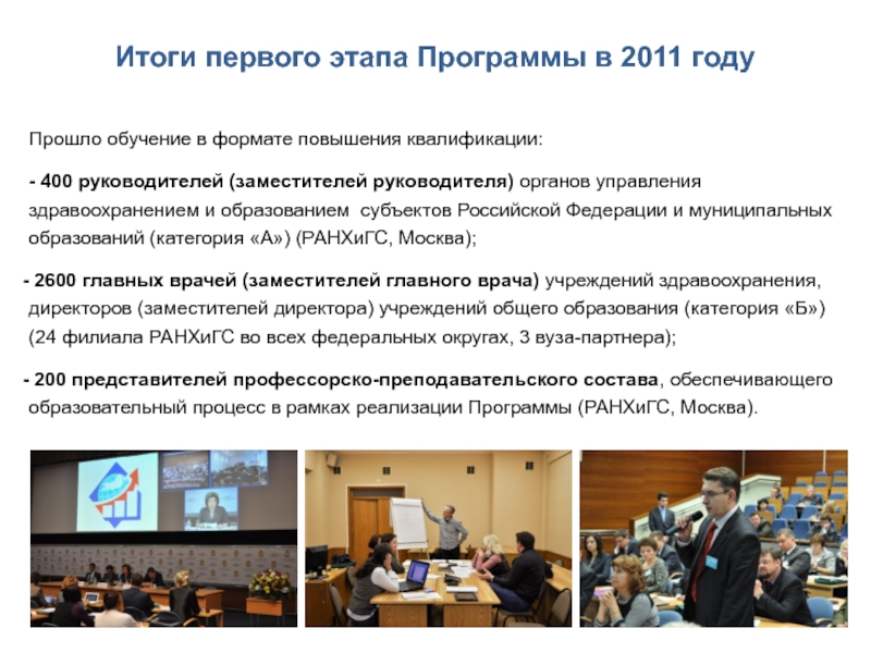 400 слушателей – руководителей (руководящих сотрудников) органов управления образованием и здравоохранением субъектов Российской Федерации и муниципальных образований