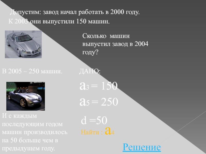 И с каждым последующим годом машин производилось на 50 больше чем в предыдущем году.