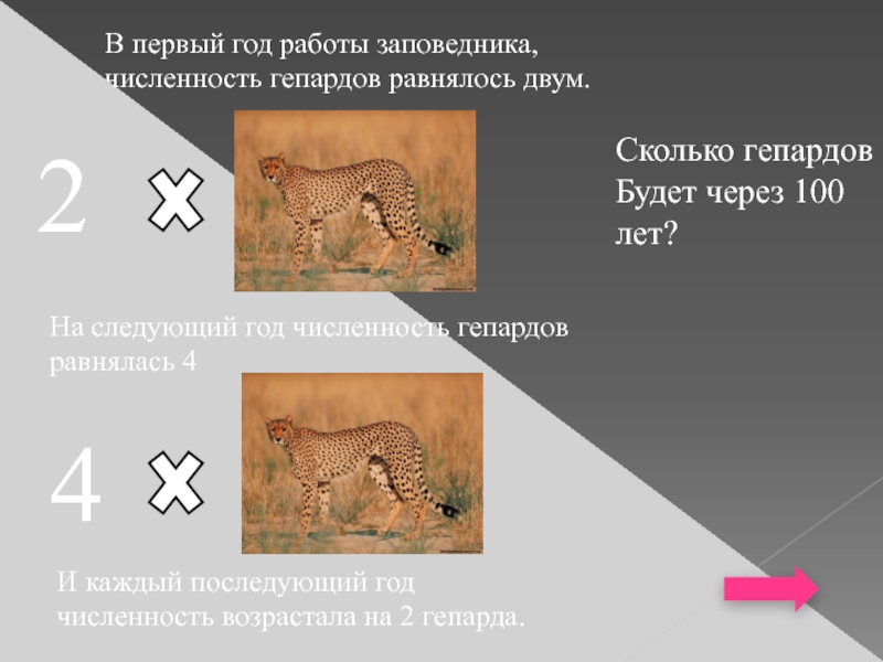 И каждый последующий год численность возрастала на 2 гепарда.