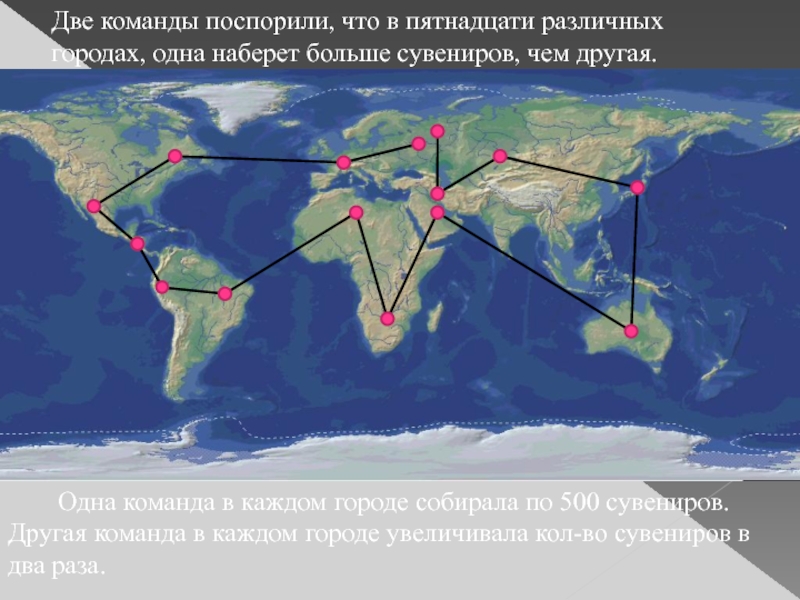 Другая команда в каждом городе увеличивала кол-во сувениров в два раза.