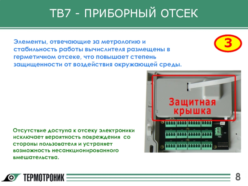 Отсутствие доступа к отсеку электроники исключает вероятность повреждения со стороны пользователя и устраняет возможность несанкционированного вмешательства.