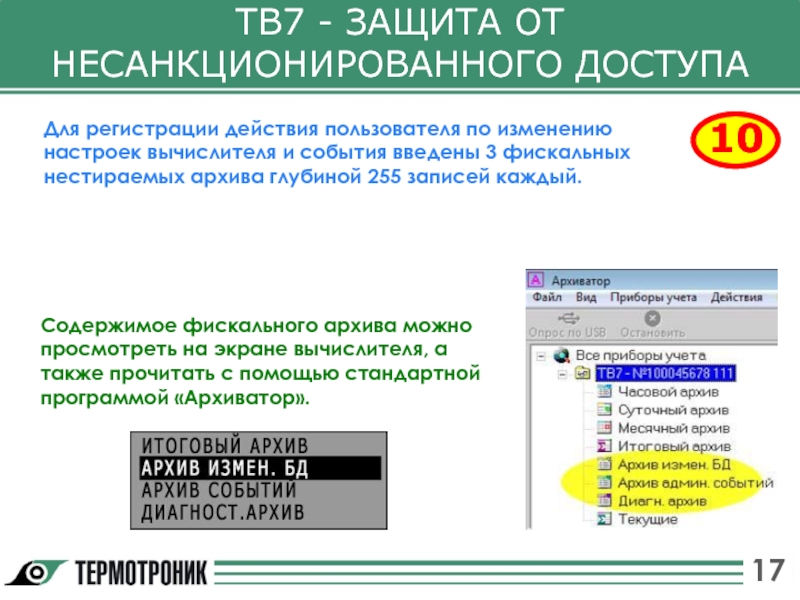 Емкости встроенной памяти хватает для хранения 6000 архивных записей, что соответствует объему данных с 500 вычислителей за год эксплуатации.