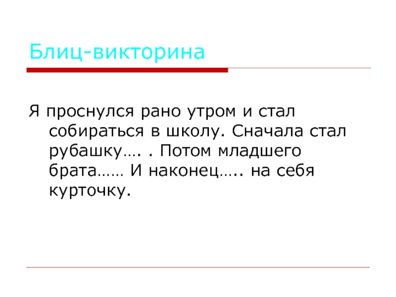 Я проснулся рано утром и стал собираться в школу. Сначала стал
