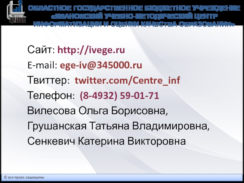 ОБЛАСТНОЕ ГОСУДАРСТВЕННОЕ БЮДЖЕТНОЕ УЧРЕЖДЕНИЕ «ИВАНОВСКИЙ УЧЕБНО-МЕТОДИЧЕСКИЙ ЦЕНТР ИНФОРМАТИЗАЦИИ И ОЦЕНКИ КАЧЕСТВА ОБРАЗОВАНИЯ»