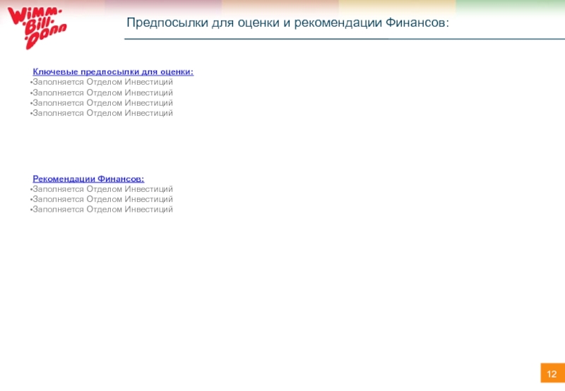 Слайд 12Предпосылки для оценки и рекомендации Финансов:
