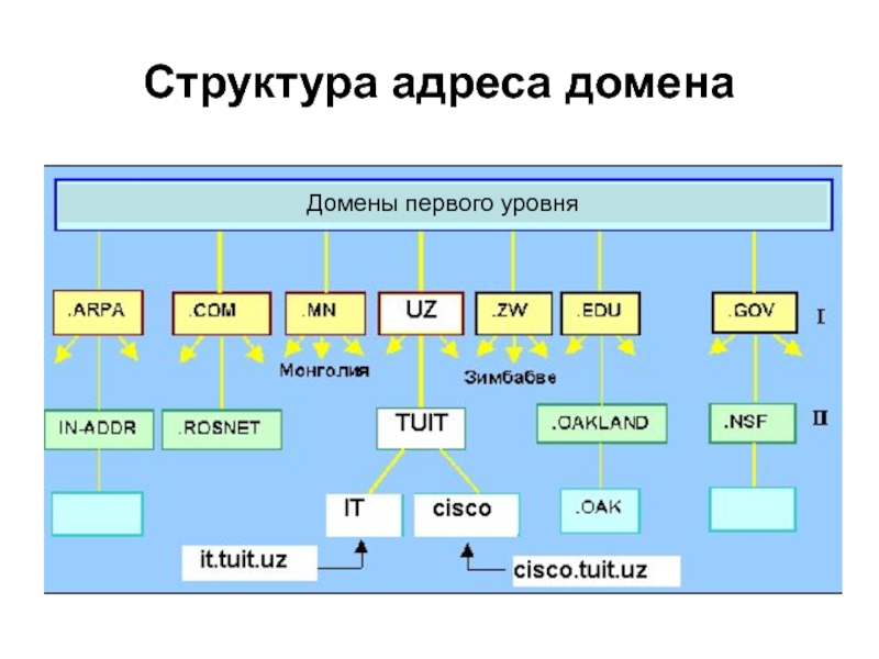 Адрес домена компьютера или адрес веб-ресурса имеет подобный вид: http://www.tuit.uz, http://www.aci.uz.
