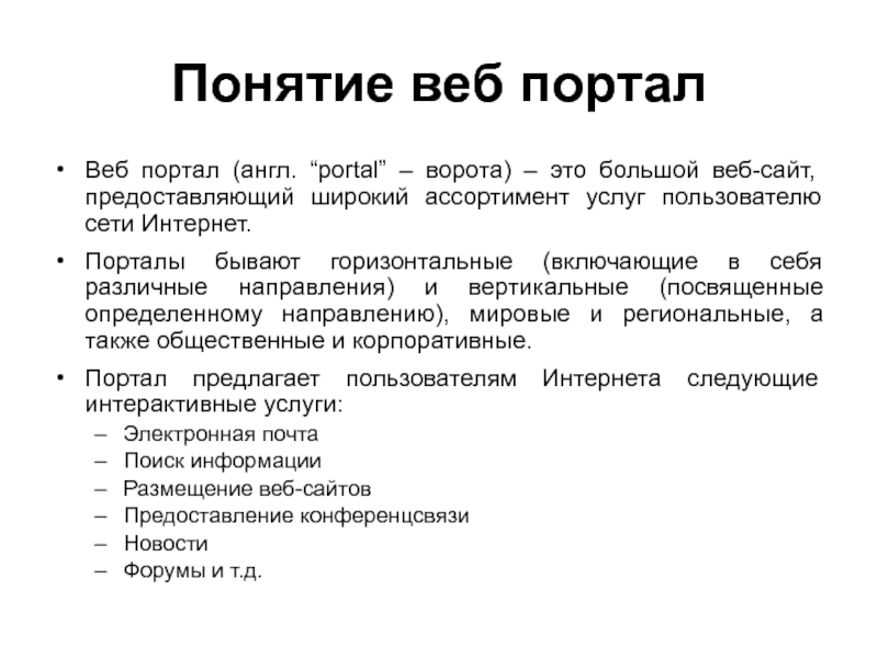 веб-сайт, предоставляющий широкий ассортимент услуг пользователю сети Интернет.