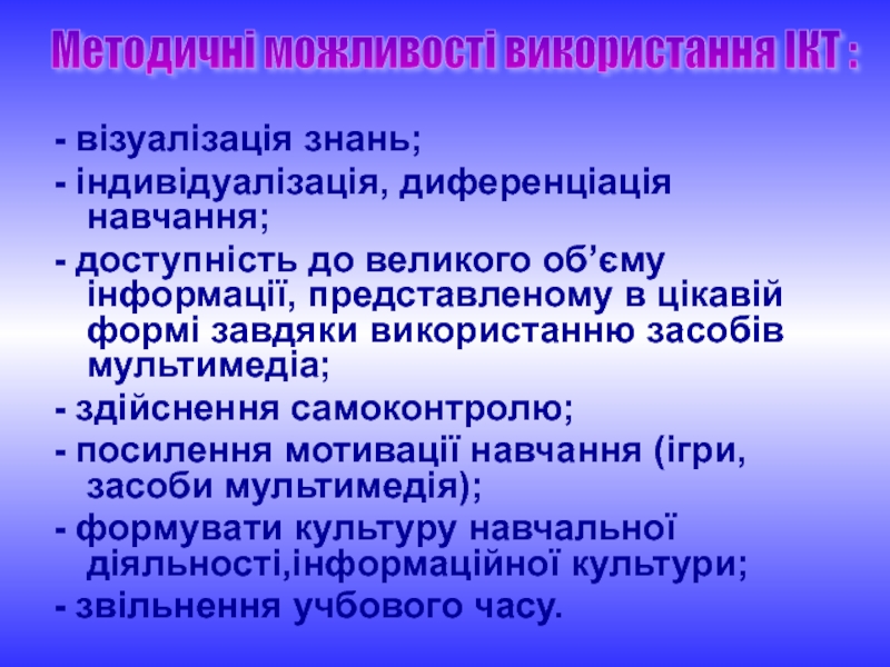 Методичні можливості використання ІКТ :