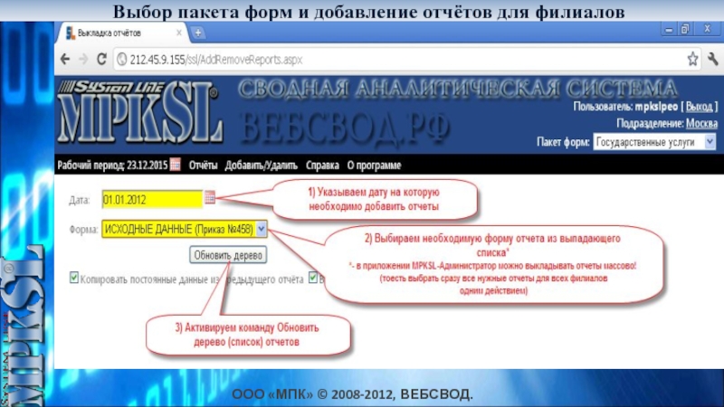 http:// http://ВЕБСВОД.РФ ( Логин: systemline и пароль mpksldemo)